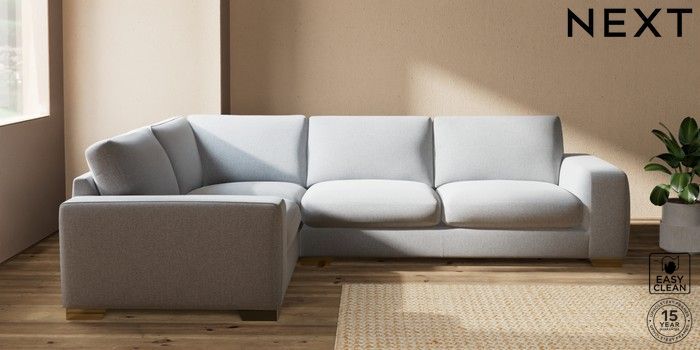 7.2.10 Houghton Deep Sit Large Corner Sofa - Left Hand Tweedy Blend Easy Clean Light Silver Grey Large Square Angle - Brushed Brass | Made Click here to use our website with more accessibility support, for example screen readers