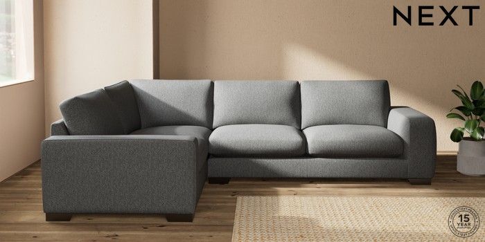 7.2.10 Houghton Deep Sit Large Corner Sofa - Left Hand Tweedy Chenille Dark Grey Large Square Angle - Gunmetal | Made Click here to use our website with more accessibility support, for example screen readers