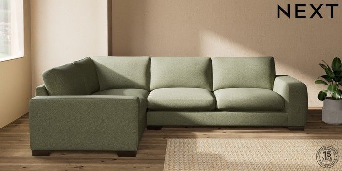 7.2.10 Houghton Deep Sit Large Corner Sofa - Left Hand Tweedy Chenille Mid Moss Green Large Square Angle - Gunmetal | Made Click here to use our website with more accessibility support, for example screen readers