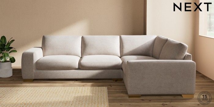 7.2.10 Houghton Deep Sit Large Corner Sofa - Right Hand Boucle Chenille Light Natural Large Square Angle - Brushed Brass | Made Click here to use our website with more accessibility support, for example screen readers