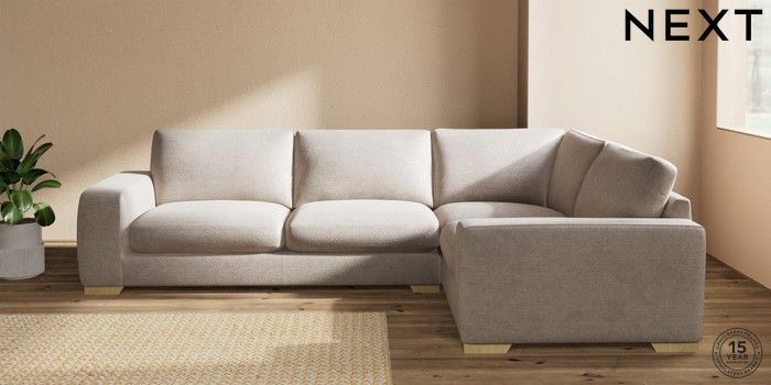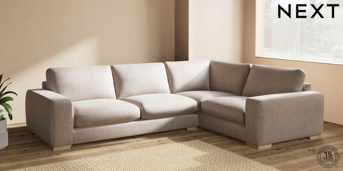 7.2.10 Houghton Deep Sit Large Corner Sofa - Right Hand Boucle Chenille Light Natural Large Square Angle - Light | Made Click here to use our website with more accessibility support, for example screen readers