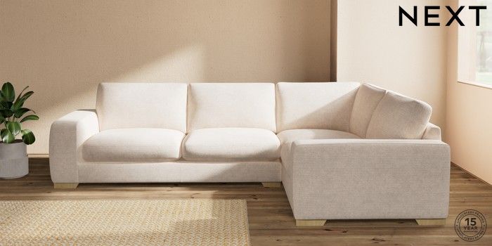 7.2.10 Houghton Deep Sit Large Corner Sofa - Right Hand Boucle Chenille Oyster Large Square Angle - Light | Made Click here to use our website with more accessibility support, for example screen readers