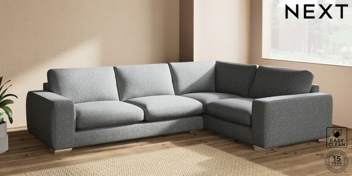 7.2.10 Houghton Deep Sit Large Corner Sofa - Right Hand Chunky Boucle Easy Clean Mid Grey Large Square Angle - Chrome Metal | Made Click here to use our website with more accessibility support, for example screen readers