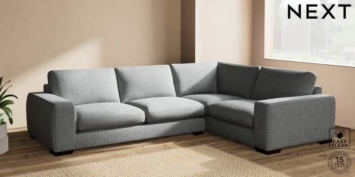 7.2.10 Houghton Deep Sit Large Corner Sofa - Right Hand Chunky Boucle Easy Clean Mid Grey Large Square Angle - Dark | Made Click here to use our website with more accessibility support, for example screen readers