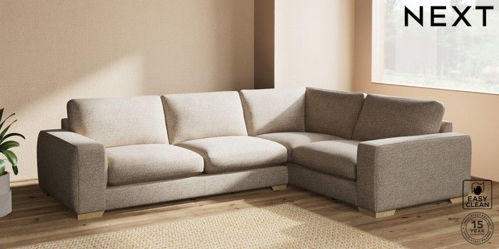 7.2.10 Houghton Deep Sit Large Corner Sofa - Right Hand Chunky Boucle Easy Clean Mid Natural Large Square Angle - Light | Made Click here to use our website with more accessibility support, for example screen readers