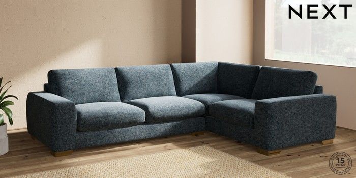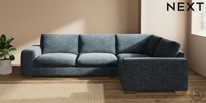 7.2.10 Houghton Deep Sit Large Corner Sofa - Right Hand Chunky Chenille Dark Navy Blue Large Square Angle - Brushed Brass | Made Click here to use our website with more accessibility support, for example screen readers