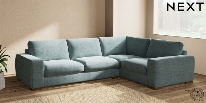 7.2.10 Houghton Deep Sit Large Corner Sofa - Right Hand Chunky Chenille Light Teal Green Large Square Angle - Mid | Made Click here to use our website with more accessibility support, for example screen readers