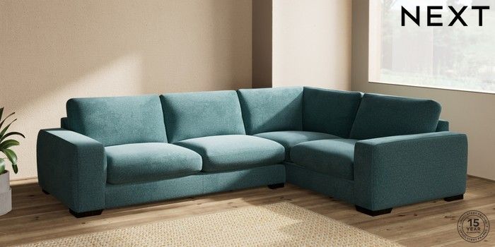 7.2.10 Houghton Deep Sit Large Corner Sofa - Right Hand Chunky Chenille Mid Teal Green Large Square Angle - Dark | Made Click here to use our website with more accessibility support, for example screen readers