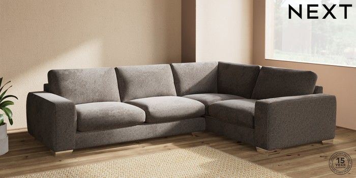 7.2.10 Houghton Deep Sit Large Corner Sofa - Right Hand Chunky Chenille Mink Brown Large Square Angle - Chrome Metal | Made Click here to use our website with more accessibility support, for example screen readers