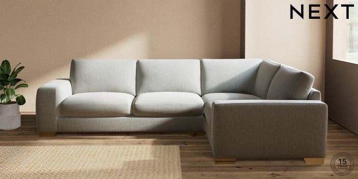 7.2.10 Houghton Deep Sit Large Corner Sofa - Right Hand Chunky Texture Dove Large Square Angle - Brushed Brass | Made Click here to use our website with more accessibility support, for example screen readers