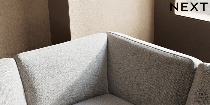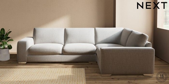 7.2.10 Houghton Deep Sit Large Corner Sofa - Right Hand Chunky Weave Dove Grey Large Square Angle - Chrome Metal | Made Click here to use our website with more accessibility support, for example screen readers