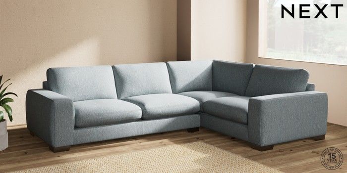 7.2.10 Houghton Deep Sit Large Corner Sofa - Right Hand Chunky Weave Mid Blue Large Square Angle - Gunmetal | Made Click here to use our website with more accessibility support, for example screen readers