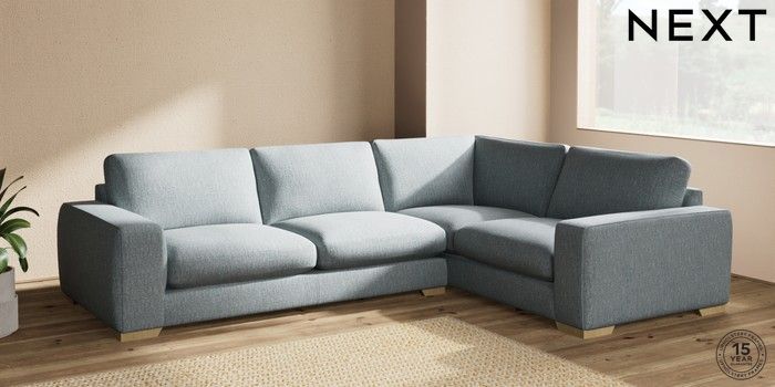 7.2.10 Houghton Deep Sit Large Corner Sofa - Right Hand Chunky Weave Mid Blue Large Square Angle - Light | Made Click here to use our website with more accessibility support, for example screen readers