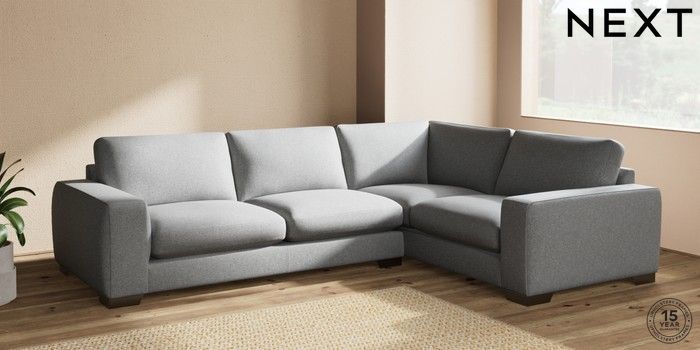 7.2.10 Houghton Deep Sit Large Corner Sofa - Right Hand Chunky Weave Mid Grey Large Square Angle - Gunmetal | Made Click here to use our website with more accessibility support, for example screen readers