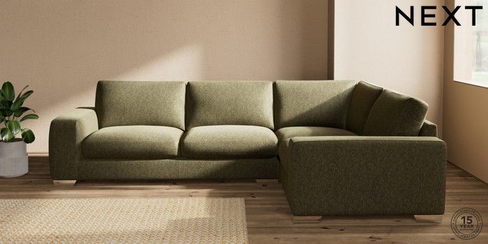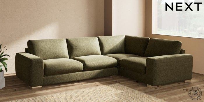 7.2.10 Houghton Deep Sit Large Corner Sofa - Right Hand Cotswold Chenille Dark Green Large Square Angle - Chrome Metal | Made Click here to use our website with more accessibility support, for example screen readers