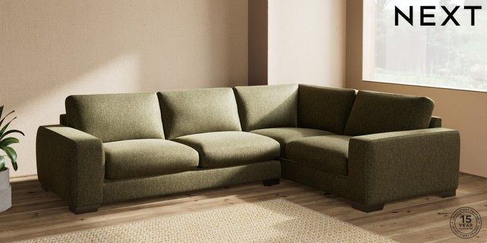 7.2.10 Houghton Deep Sit Large Corner Sofa - Right Hand Cotswold Chenille Dark Green Large Square Angle - Gunmetal | Made Click here to use our website with more accessibility support, for example screen readers