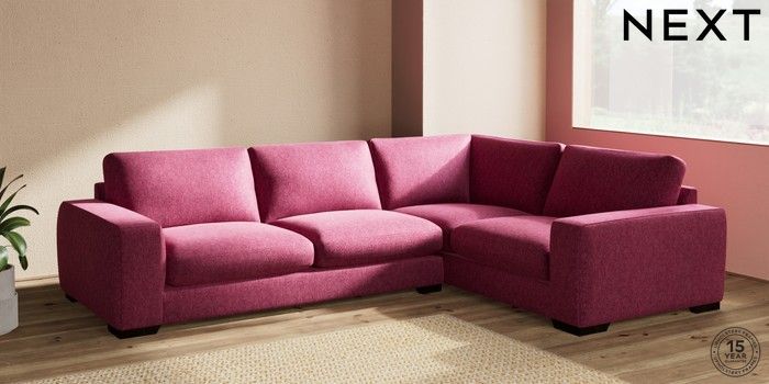 7.2.10 Houghton Deep Sit Large Corner Sofa - Right Hand Cotswold Chenille Dark Raspberry Pink Large Square Angle - Dark | Made Click here to use our website with more accessibility support, for example screen readers