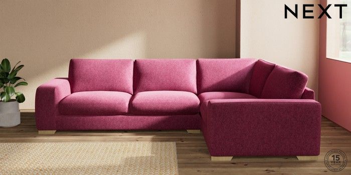 7.2.10 Houghton Deep Sit Large Corner Sofa - Right Hand Cotswold Chenille Dark Raspberry Pink Large Square Angle - Light | Made Click here to use our website with more accessibility support, for example screen readers