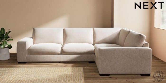 7.2.10 Houghton Deep Sit Large Corner Sofa - Right Hand Cotswold Chenille Light Natural Large Square Angle - Dark | Made Click here to use our website with more accessibility support, for example screen readers