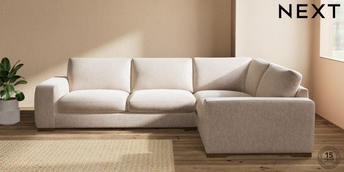7.2.10 Houghton Deep Sit Large Corner Sofa - Right Hand Cotswold Chenille Light Natural Large Square Angle - Mid | Made Click here to use our website with more accessibility support, for example screen readers