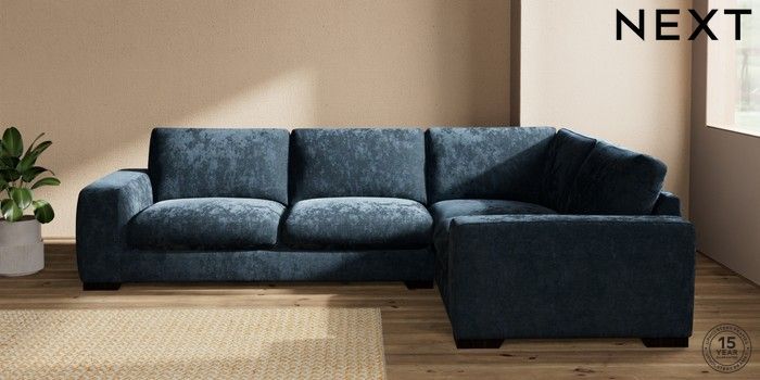 7.2.10 Houghton Deep Sit Large Corner Sofa - Right Hand Distressed Velour Midnight Blue Large Square Angle - Dark | Made Click here to use our website with more accessibility support, for example screen readers