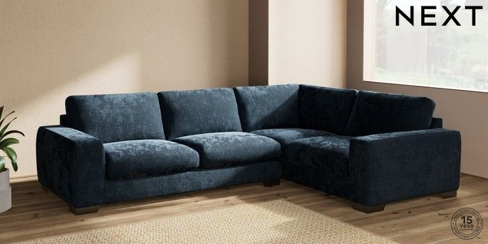 7.2.10 Houghton Deep Sit Large Corner Sofa - Right Hand Distressed Velour Midnight Blue Large Square Angle - Gunmetal | Made Click here to use our website with more accessibility support, for example screen readers