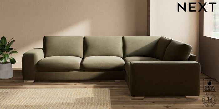 7.2.10 Houghton Deep Sit Large Corner Sofa - Right Hand Fine Chenille Easy Clean Dark Moss Green Large Square Angle - Chrome Metal | Made Click here to use our website with more accessibility support, for example screen readers