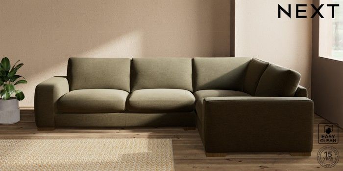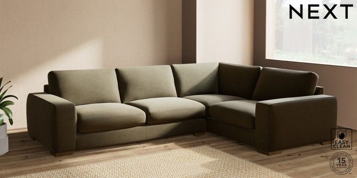 7.2.10 Houghton Deep Sit Large Corner Sofa - Right Hand Fine Chenille Easy Clean Dark Moss Green Large Square Angle - Mid | Made Click here to use our website with more accessibility support, for example screen readers