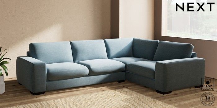 7.2.10 Houghton Deep Sit Large Corner Sofa - Right Hand Fine Chenille Easy Clean Mid Blue Large Square Angle - Dark | Made Click here to use our website with more accessibility support, for example screen readers