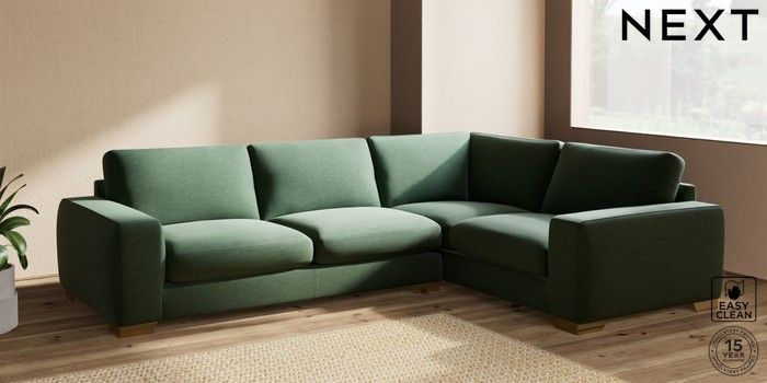 7.2.10 Houghton Deep Sit Large Corner Sofa - Right Hand Fine Chenille Easy Clean Mid Khaki Green Large Square Angle - Brushed Brass | Made Click here to use our website with more accessibility support, for example screen readers