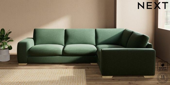 7.2.10 Houghton Deep Sit Large Corner Sofa - Right Hand Fine Chenille Easy Clean Mid Khaki Green Large Square Angle - Light | Made Click here to use our website with more accessibility support, for example screen readers