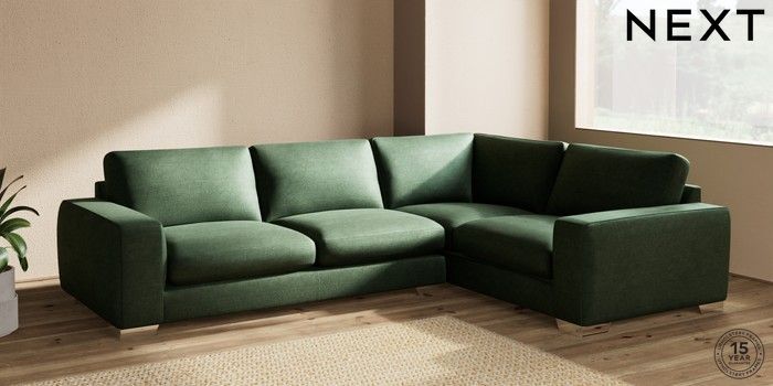 7.2.10 Houghton Deep Sit Large Corner Sofa - Right Hand Luxe Chenille Dark Green Large Square Angle - Chrome Metal | Made Click here to use our website with more accessibility support, for example screen readers