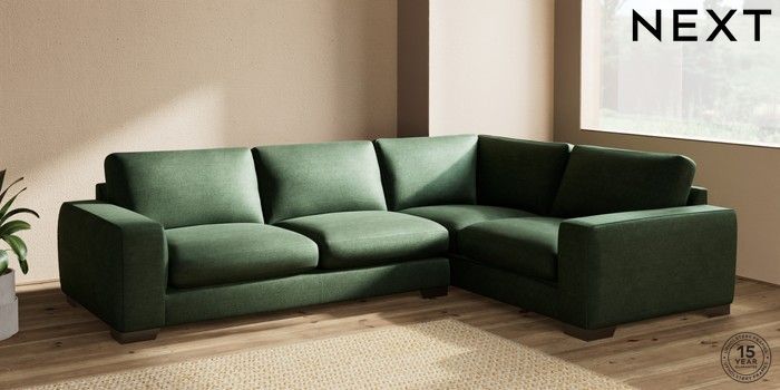 7.2.10 Houghton Deep Sit Large Corner Sofa - Right Hand Luxe Chenille Dark Green Large Square Angle - Gunmetal | Made Click here to use our website with more accessibility support, for example screen readers