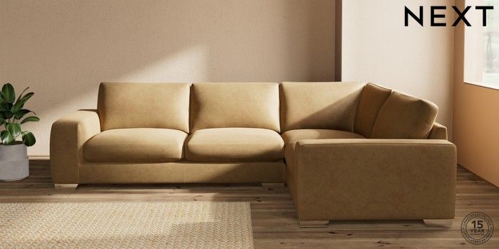 7.2.10 Houghton Deep Sit Large Corner Sofa - Right Hand Luxe Chenille Honey Yellow Large Square Angle - Chrome Metal | Made Click here to use our website with more accessibility support, for example screen readers
