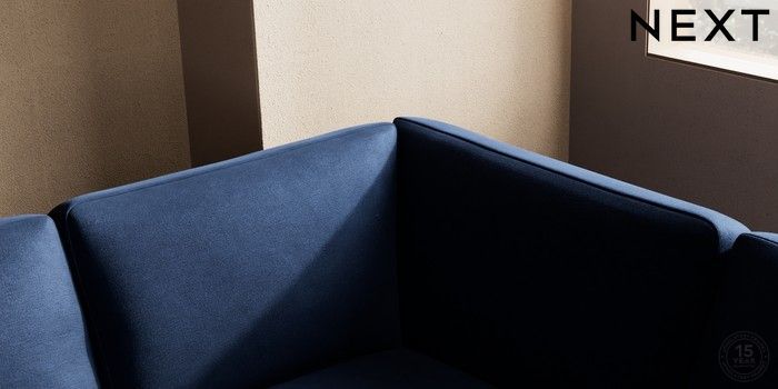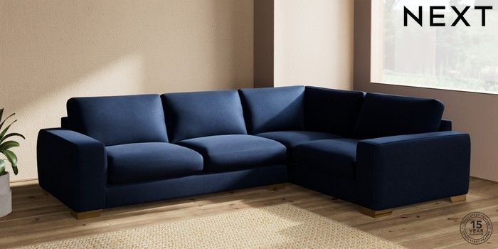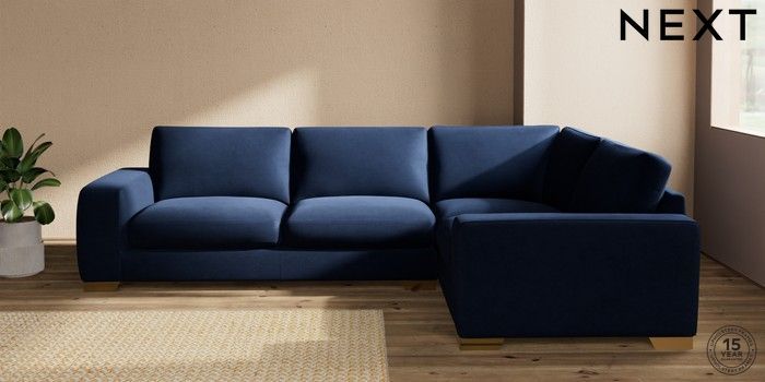 7.2.10 Houghton Deep Sit Large Corner Sofa - Right Hand Luxe Chenille Navy Blue Large Square Angle - Brushed Brass | Made Click here to use our website with more accessibility support, for example screen readers