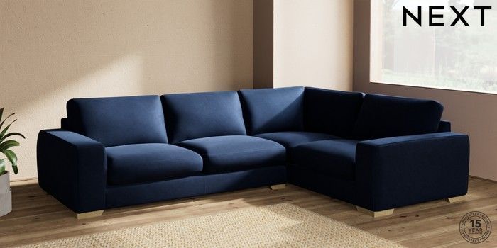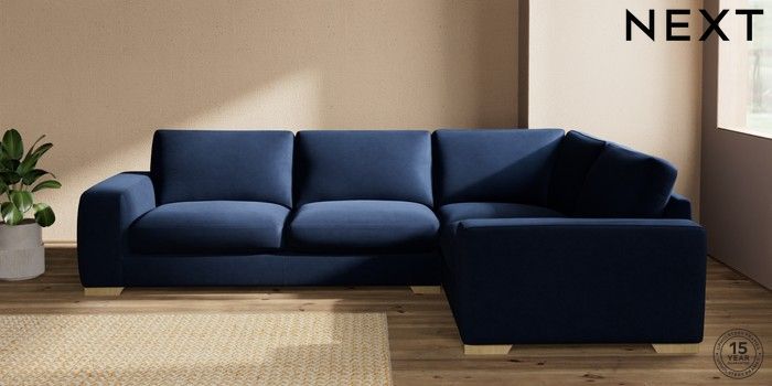 7.2.10 Houghton Deep Sit Large Corner Sofa - Right Hand Luxe Chenille Navy Blue Large Square Angle - Light | Made Click here to use our website with more accessibility support, for example screen readers