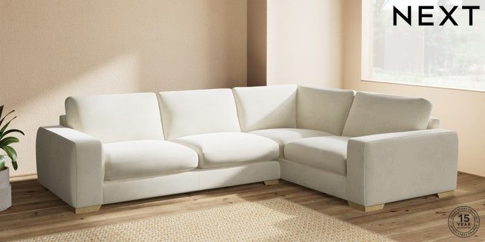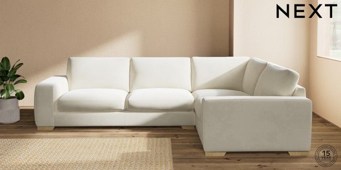 7.2.10 Houghton Deep Sit Large Corner Sofa - Right Hand Luxe Chenille Oyster Large Square Angle - Light | Made Click here to use our website with more accessibility support, for example screen readers
