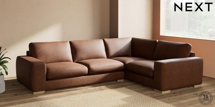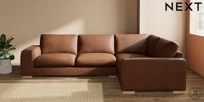 7.2.10 Houghton Deep Sit Large Corner Sofa - Right Hand Monza Faux Leather Easy Clean Chestnut Brown Large Square Angle - Light | Made Click here to use our website with more accessibility support, for example screen readers