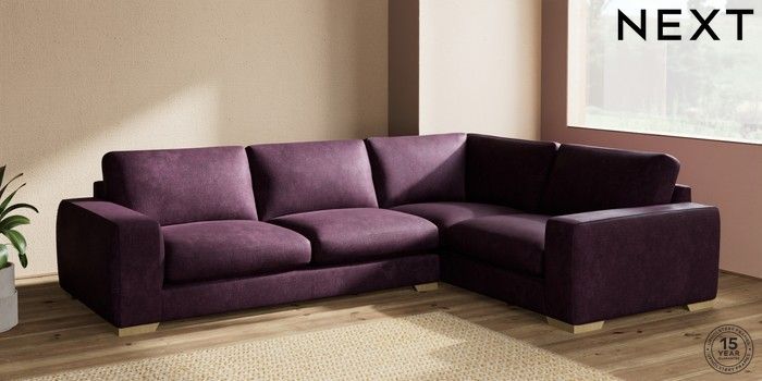 7.2.10 Houghton Deep Sit Large Corner Sofa - Right Hand Plush Chenille Dark Plum Purple Large Square Angle - Light | Made Click here to use our website with more accessibility support, for example screen readers