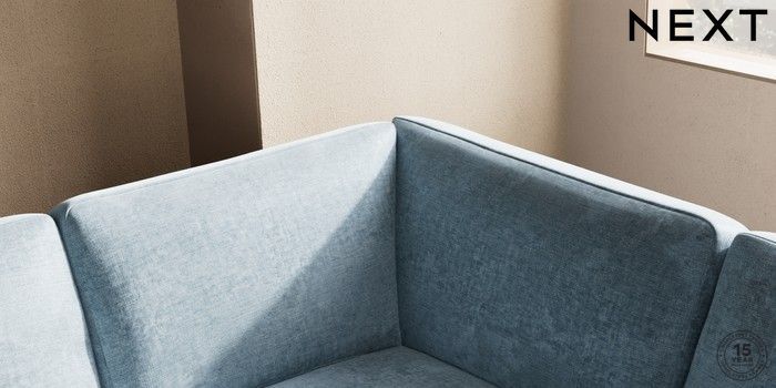 7.2.10 Houghton Deep Sit Large Corner Sofa - Right Hand Plush Chenille Light Blue Large Square Angle - Brushed Brass | Made Click here to use our website with more accessibility support, for example screen readers