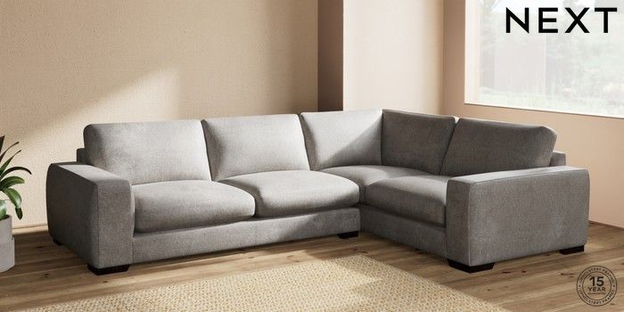 7.2.10 Houghton Deep Sit Large Corner Sofa - Right Hand Plush Chenille Light Grey Large Square Angle - Dark | Made Click here to use our website with more accessibility support, for example screen readers