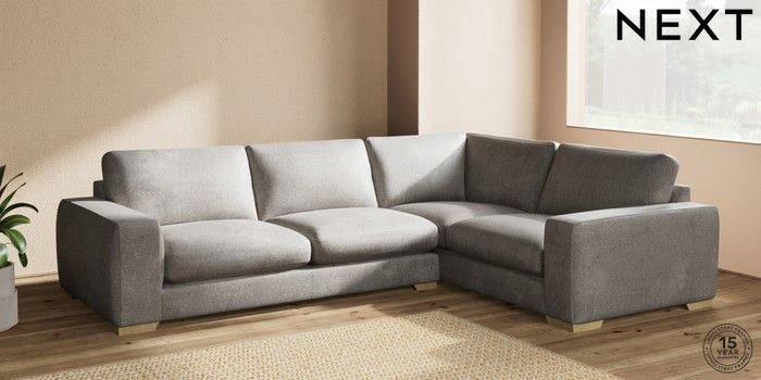 7.2.10 Houghton Deep Sit Large Corner Sofa - Right Hand Plush Chenille Light Grey Large Square Angle - Light | Made Click here to use our website with more accessibility support, for example screen readers