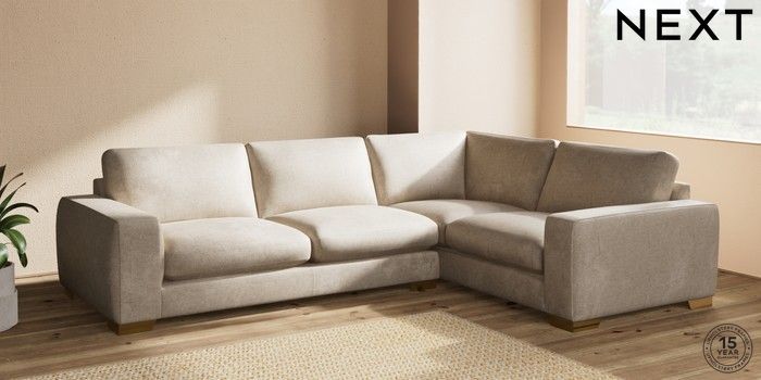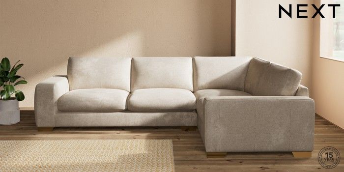 7.2.10 Houghton Deep Sit Large Corner Sofa - Right Hand Plush Chenille Light Natural Large Square Angle - Brushed Brass | Made Click here to use our website with more accessibility support, for example screen readers