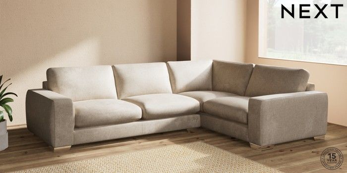 7.2.10 Houghton Deep Sit Large Corner Sofa - Right Hand Plush Chenille Light Natural Large Square Angle - Chrome Metal | Made Click here to use our website with more accessibility support, for example screen readers