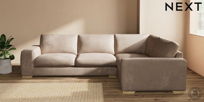 7.2.10 Houghton Deep Sit Large Corner Sofa - Right Hand Plush Chenille Mid Natural Large Square Angle - Light | Made Click here to use our website with more accessibility support, for example screen readers