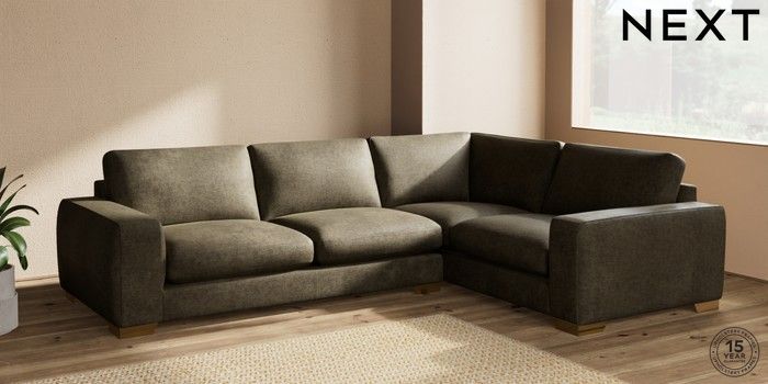7.2.10 Houghton Deep Sit Large Corner Sofa - Right Hand Plush Chenille Moss Green Large Square Angle - Brushed Brass | Made Click here to use our website with more accessibility support, for example screen readers