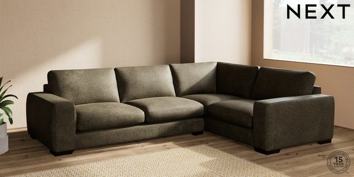 7.2.10 Houghton Deep Sit Large Corner Sofa - Right Hand Plush Chenille Moss Green Large Square Angle - Dark | Made Click here to use our website with more accessibility support, for example screen readers