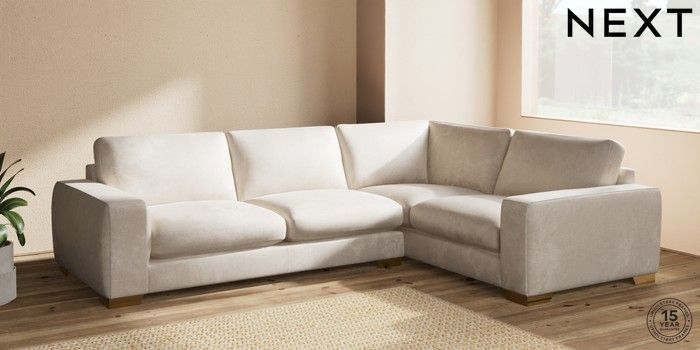 7.2.10 Houghton Deep Sit Large Corner Sofa - Right Hand Plush Chenille Oyster Large Square Angle - Brushed Brass | Made Click here to use our website with more accessibility support, for example screen readers
