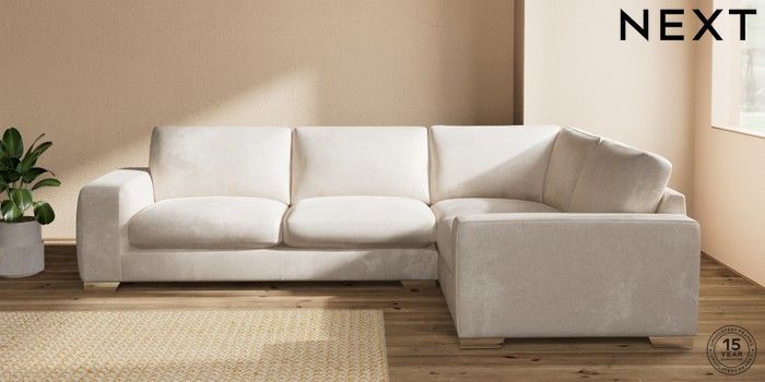 7.2.10 Houghton Deep Sit Large Corner Sofa - Right Hand Plush Chenille Oyster Large Square Angle - Chrome Metal | Made Click here to use our website with more accessibility support, for example screen readers
