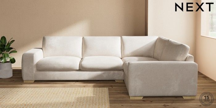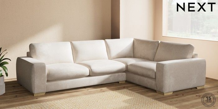 7.2.10 Houghton Deep Sit Large Corner Sofa - Right Hand Plush Chenille Oyster Large Square Angle - Light | Made Click here to use our website with more accessibility support, for example screen readers